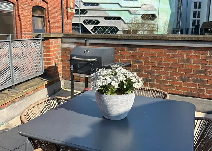 A Central Leeds Townhouse With Private Roof Garden Sleeps 4 Trinity körzetben van, a Leeds City vasútállomástól rövid útra. A First Direct aréna csak 250 méter távolságra helyezkedik el. A Leedsi Városi Művészeti Galéria továbbá alig 9 percnyi sétára található.